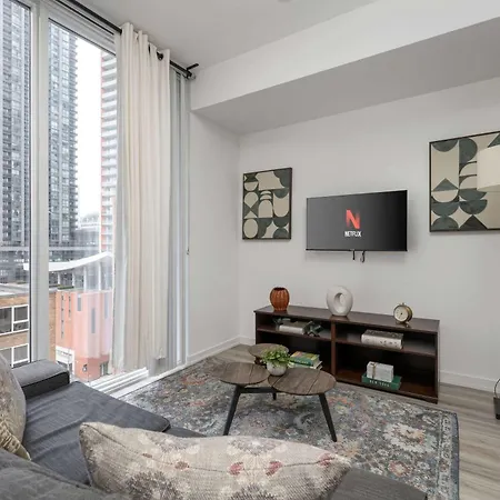 Apartmán Apartmán 1Bd Next To Queen St - Most Ideal Location nabízí kompletní kuchyni i pokoje s televizí, Wi-Fi a vícekanálovou televizí. Toto ubytování o rozloze 44 m^2 ve městě Toronto se nachází kousek od Divadlo Four Seasons Centre a 5 minut chůze od stanice metra Osgoode.