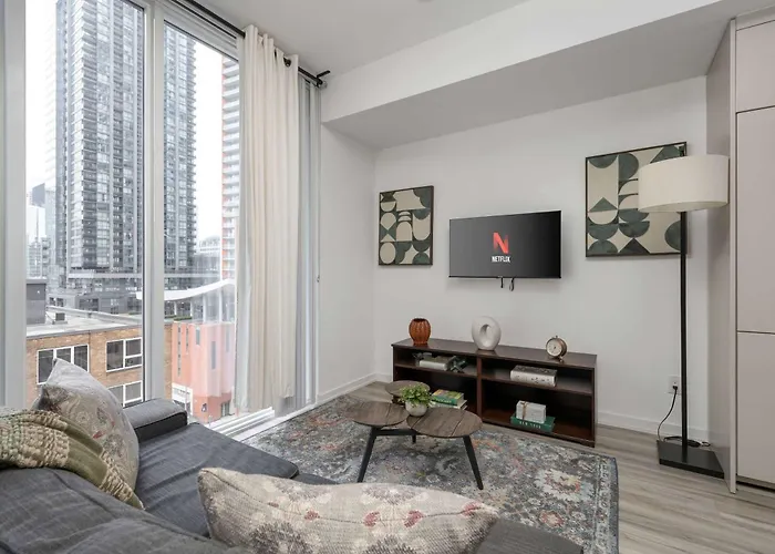 Apartmán se nachází 13 minut chůze od Nákupní centrum Toronto Eaton Centre a 8 minut chůze od Grange Park. Apartmán leží ve čtvrti Toronto centrum. Ubytování je také 100 metrů od fast food restaurace Mucho Burrito Queen St.